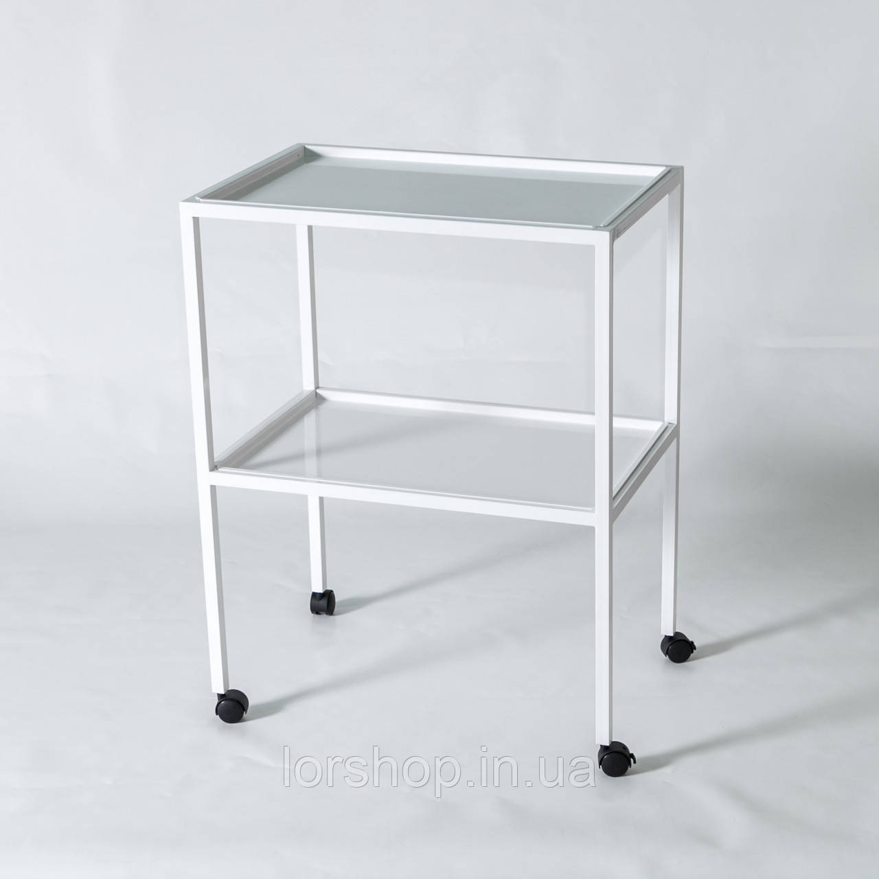 Столик медичний складається з металевого каркаса з полімерним покриттям, встановленого на коліщата з гальмами. На каркасі розташовуються дві металеві полиці.