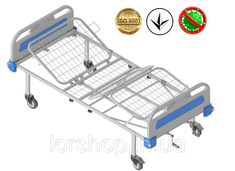 Конструкція медичної ліжка виконана з сталевих труб, забарвлених порошковою фарбою з антибактеріальними властивостями.